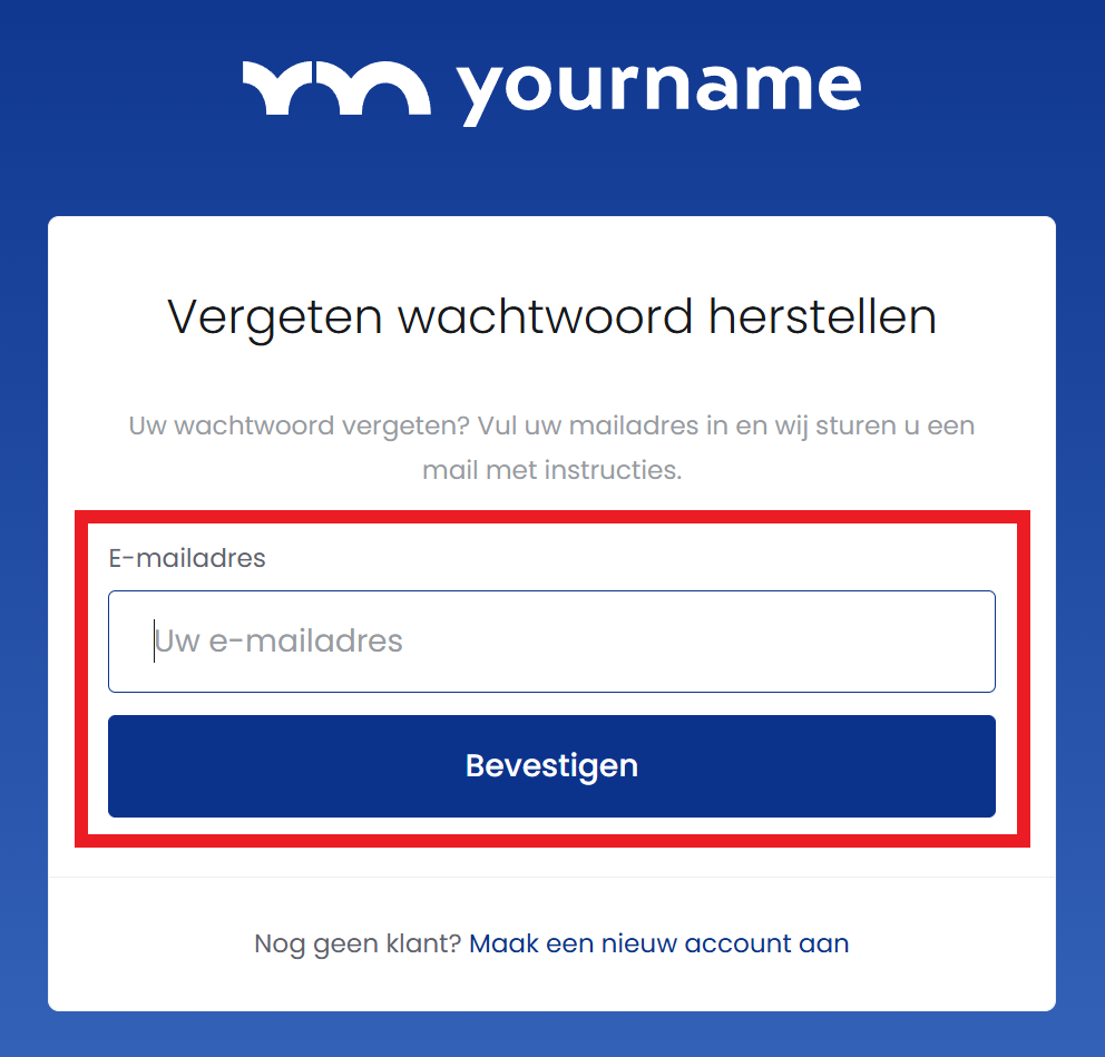 U ontvangt van ons een e-mail met een link om uw wachtwoord te herstellen. Dit kan enkele minuten duren. Ziet u de e-mail niet? Controleer dan uw spam- of ongewenste e-mailmap.