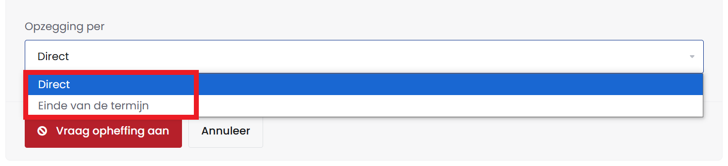Per direct: de dienst wordt direct beëindigd. Let op: u ontvangt geen restitutie voor de resterende periode.