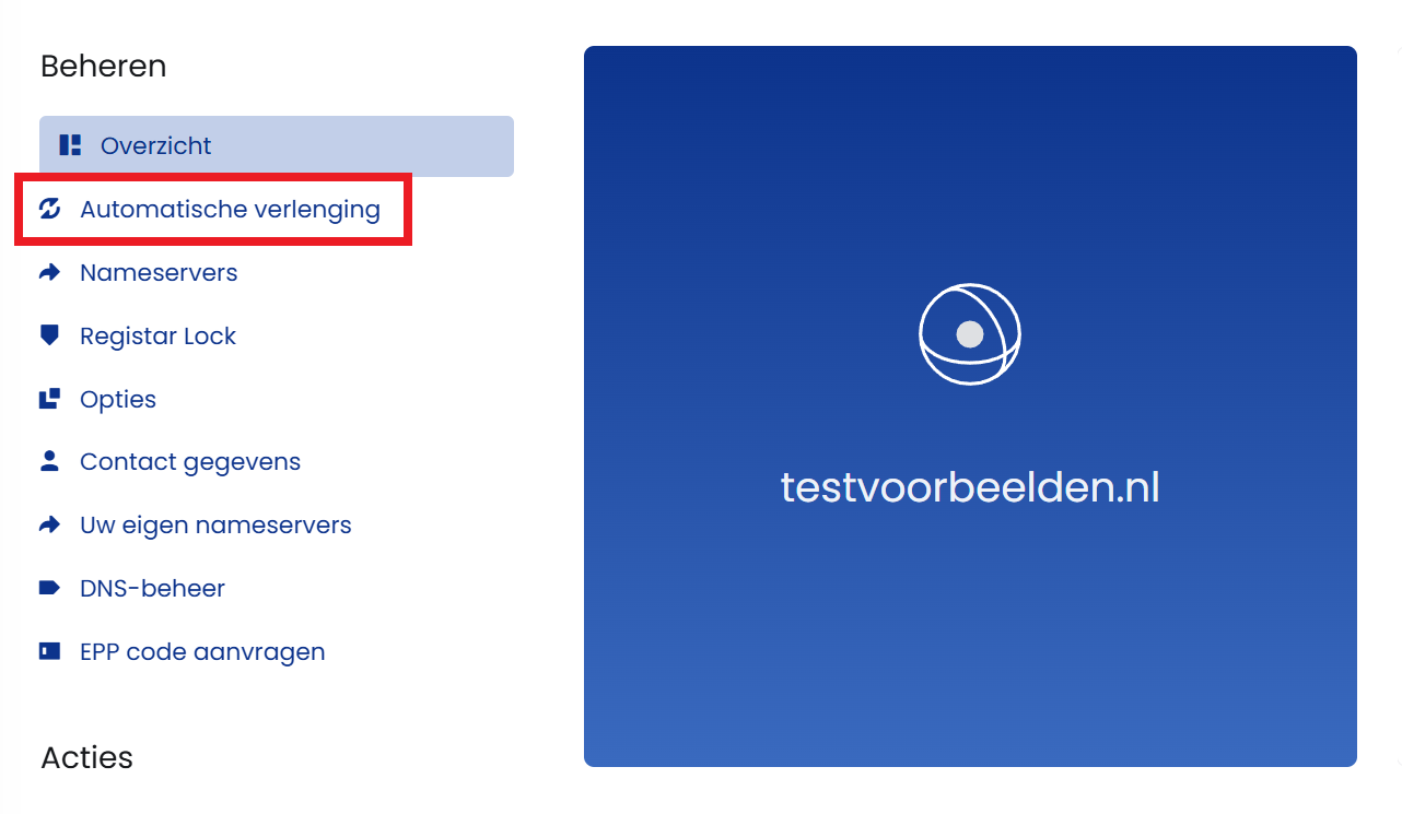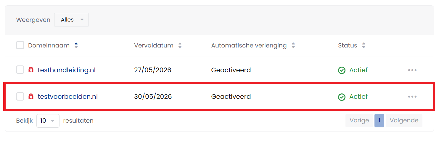 - Domeinnamen: een domeinnaam blijft actief tot het einde van de registratieperiode, zelfs als u automatische verlenging uitschakelt. Verandert u van gedachten? Zorg dan dat u de domeinnaam op tijd heractiveert.